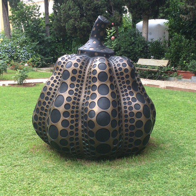 Πάμε παρακάτω. Κινούμαστε μέσα σε βλάστηση και εννοιολογική τέχνη: Η μάζα, μια ακανόνιστη σφαίρα, που κρέμεται ανάμεσα σε δυο δέντρα, που μοιάζει με μετεωρίτη και τρία ζευγάρια χέρια βγαίνουν μέσα από αυτή σα να την πλάθουν, σα να ξεπετάγονται ζόμπι από το χώμα, σε μια συνεχή προφανώς αναμόρφωση-ένας μεγάλος χωμάτινος κεφτές, μια κακοφορμισμένη μπάλα από πηλό εκσφενδονισμένη από ηφαίστειο, ή δεν-ξερω-‘γω-τι, που πάει κι έρχεται λικνιστικά από το φύσημα του αέρα-, αυτό-αυτό σίγουρα το ξεχώρισα. Remake Remodel του Λονδρέζου William Cobbing. Όπως και εκείνο επί της υποδοχής, το καρχαριώδες γλυπτό, ασημένιο και γλυκο-τρομακτικό, σαν από αμερικάνικο b-movie σφήνα στην γαλλική νεφελωζιτέ. Το SUNRISE.east.July του Ugo Rondinone.