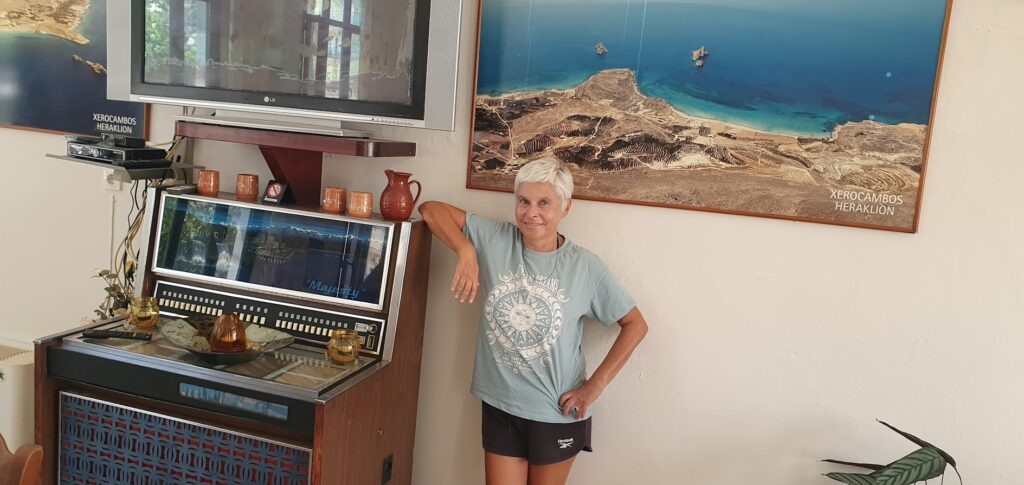 - Στη Ζήρο λοιπόν έστεκε σιωπηλά καμαρωτό και ένα τζουκ-μποξ Majesty. Ρωτάμε – το πουλάτε; Όχι, η απάντηση. Εδώ που τα λέμε, πώς να το φέρεις κι από εκεί (θα βρίσκαμε τρόπο). Το θαυμάσαμε και το αφήσαμε στην ησυχία του στο καφενείο του χωριού. Αλλά μια στιγμή: τι είναι τούτο πάλι; Γιγάντιο ξυλάγγουρο αραχτό στη μπάρα. Το καφενείο με τα παράξενα. Σε άλλες ευμεγέθεις ειδήσεις, στην Σητεία μερικές μέρες νωρίτερα μαγείρεψαν – και σέρβιραν – την πιο μεγάλη ψαρόσουπα που μπήκε και στο βιβλίο των ρεκόρ Γκίνες, με κάθε επισημότητα, εκλεκτούς καλεσμένους και με τη βούλα. Έφαγαν, έμαθα, καλά.