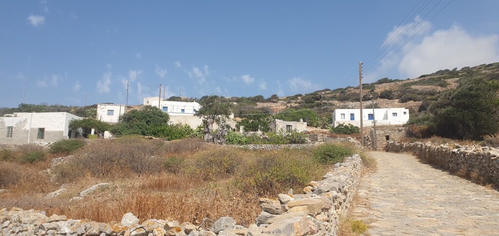Τότε που λες πατέρα, βλέπω τη γυναίκα, μαύρα ρούχα, άσπρα μαλλιά, σα να’ μοιαζε με τη γιαγιά μού φάνηκε. Στην αυλή, βγαίνει από το σπίτι, ή μάλλον μπαίνει πάλι μέσα. Προλαβαίνω και την χαιρετάω. Γυρίζει να με δει. Και τη ρωτάω τότε… αν ήξερε τον Μάρκο τον Μαρκουλή και τη Μαρία την Κωβαίου; Ναι μου λέει, αμέσως. Από εκείνους, το σπίτι… Και σε εκείνα έμεναν, λέει, και μου δείχνει και κάποια άλλα κάπως πιο ψηλά. Έρημα, αφημένα, πέτρες στον ήλιο και ασημόπετρες στο φεγγάρι.